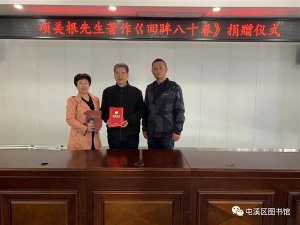 文章詳情4月26日上午,項美根先生捐書儀式在屯溪區(qū)圖書館六樓會議室舉行。項美根先生此次捐贈給我館的是他的個人作品《回眸八十春》。屯溪區(qū)圖書館館長胡煒接收了圖書饋贈,副館長王鵬為項老頒發(fā)捐書證書。