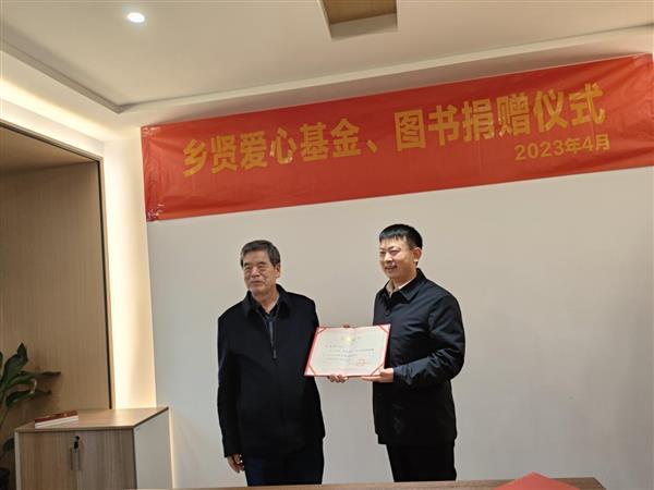 鄉(xiāng)賢項美根捐贈人民幣10萬元以及自傳《回眸八十春》