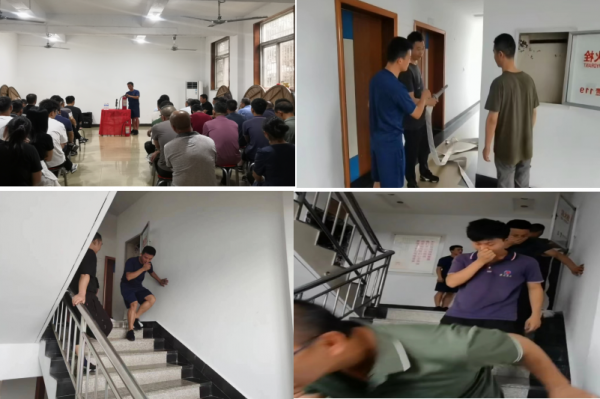 首先,汪隊(duì)長講解了滅火器、消防栓等消防器材的基礎(chǔ)知識(shí)、注意事項(xiàng),并做了使用演示。接著,模擬公司辦公大樓出現(xiàn)火災(zāi)險(xiǎn)情時(shí)的滅火處置和人員疏散演練。